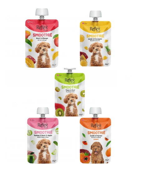 Reflex Plus Smoothie Sıvı Köpek Ödülü 85 GR 5 li Karışık Set